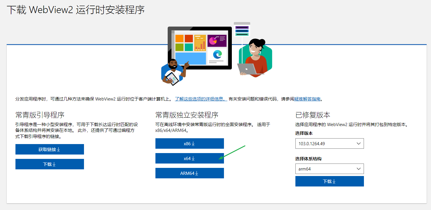选择官网下载时,对 WebView2 Runtime